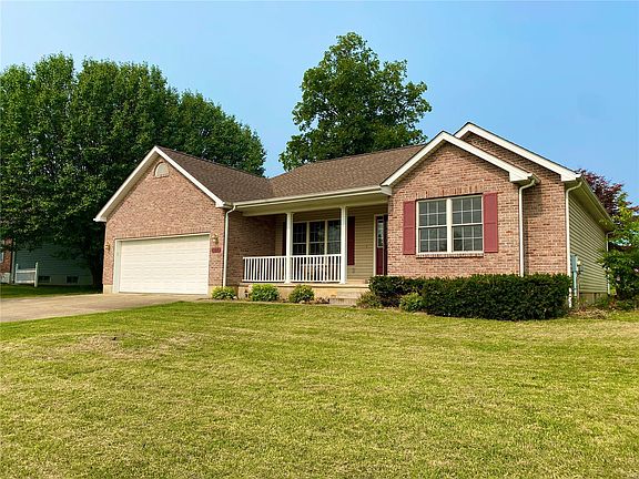 Beautiful, well-maintained 3 bedroom, 2 full bath home in convenient location. Brick accents and newer roof add to curb appeal.  Large covered front porch perfect for conversing in rocking chairs and watching the world go by. Front door opens to spacious living room and split floor plan. Large master en suite with separate soaker tub and shower. Oversized laundry off garage entrance to easily dispense of dirt before entering rest of home. Solid oak cabinets and updated countertops found in kitchen/dining room combo. Refrigerator, dishwasher, disposal, stove, and built in microwave will remain with home. French doors open onto expansive covered back patio perfect for summertime get-togethers. Full, unfinished basement with walk-up to backyard is plumbed for 3rd bath and has been waterproofed for your peace of mind. Solid, well built home ready for your finishing touches.