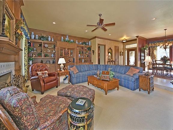 Get swept away in comfort & luxury! While your neighbors travel to find serenity, enjoy an escape in your backyard oasis, relaxing by the fire, listening to a waterfall's soothing sounds & watching nature unfold. Beyond the landscaped entry is a porcelain tile dining space & carpeted living area w/fireplace, open bar, built-ins & windows w/breathtaking views! Adjacent is a kitchen for entertaining! It has plenty of storage, stainless steel appliances, granite counters, center island, & opens to an eating area w/built-in buffet & back patio access. Within this wing is a cozy yet luxurious room (w/fireplace) of many uses (game room, study, man cave, TV room) & views/access to backyard. Also a bedroom, full bath & huge laundry room w/desk area, shelf space, sink. Other wing: Magnificent Master Bed/Bath w/backyard access/views, sitting area, fireplace, 2 sinks, soaking tub + shower, walk-in closet. Also, 2 bedroom + full bath w/double vanity. Oversized 2 car garage. Impeccable!