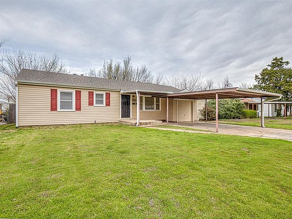 Charming, move-in ready 3-bedroom, 1-bathroom home near Rose State College and plenty of shopping and dining! Luxury vinyl flooring recently installed throughout. Updated bathroom and kitchen. Large, covered carport and 1-car attached garage, including in ground storm shelter. MULTIPLE OFFERS RECEIVED - all offers due by NOON on Friday, 4/4.
