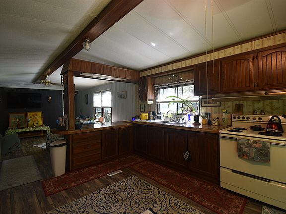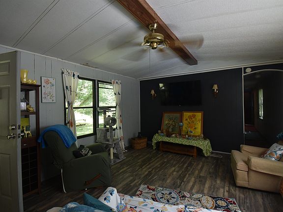 Affordable Country Living. Spacious 2BR with good sized rooms. Beautiful wooded lot that backs up to creek and woods. Fenced back yard with chicken coop. New flooring and paint inside. All new plumbing too. 10x16 yard barn, washer/dryer, and all appliances are included. City water.