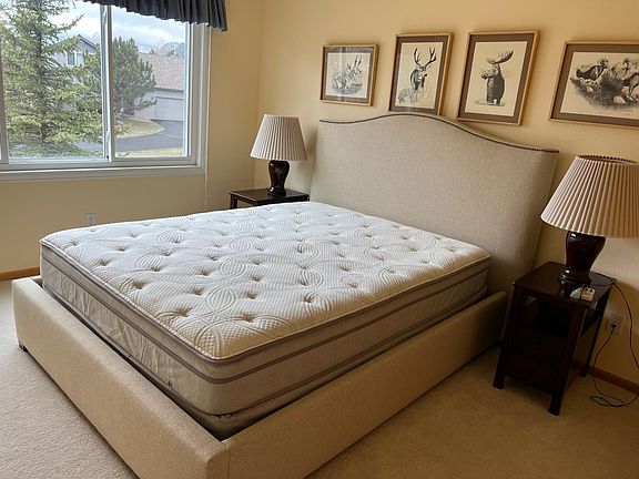Exceptional detached Ranch Meadow condo duplex backing to open space. Custom designed expanded floor plan. Great room with cathedral height ceiling, and gas fireplace. Hardwood floors in kitchen, dining and living area. Carpeting in bedrooms and loft areas. Panoramic views of the snow cap peaks of the Rocky Mountains, Lumpy Ridge. Upgraded kitchen with maple cabinets, Corian counters , pantry. Main floor Master Suite offers a large walk-in closet, shower and large tub. Upstairs you are greeted by a spacious loft for office, music, games, or more; Two bedroom and a full bath. Enjoy the spectacular views while entertaining on the expanded deck that has an awning for shade. Oversized 2 car garage. Resident is responsible for all utilities [except water/sewer which is included in HOA dues, paid by landlord]. Pet fee and pet deposit required, HOA maximum is 2 pets. No Smoking/vaping or drugs (including legalized marijuana) on the property. Credit score of 750 or better is required. Resident must comply with all HOA restrictions/regulations.