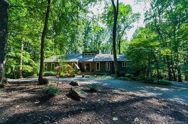 As soon as you pull into the subdivision and you see the beauty and peacefulness of the winding tree lined streets, you know you've found a little piece of Heaven! This unique home, that is tucked back off the street, features first floor living, an open concept with vaulted ceilings with rooms that open to each other and to the huge deck and screened porch! The hot tub is waiting for you after a hard days work! Then you can experience the delightful tiled sunken tub/shower bathing facilities that this Master Bath offers! The circular drive offers ample parking plus more parking on the side which gives you access to the basement entrance. The basement is perfect for a home office or work room, featuring a large storage room that houses the mechanicals. Outside you will find both attached and detached storage sheds and a little hen house so that you can have fresh eggs daily!! This is a home worth seeing that will be hard to leave and lovingly maintained! Approx/ 460 Finished SF in basement. Minutes from the Maidens Boat Landing to the James River!