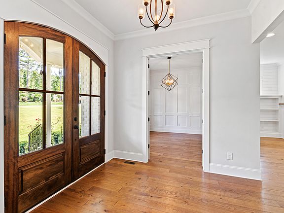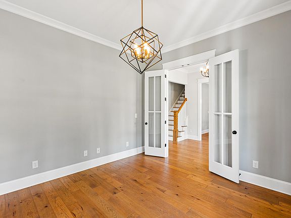 Presenting this exquisite custom-built home by the award-winning Jordan Built Homes in the prestigious Falls Reserve community of North Raleigh. With beautifully landscaped grounds and attention to detail, this home offers an impressive welcome. Upon entering through stunning wood double doors, you're greeted by expansive living areas where high ceilings and custom lighting emphasize the natural light flowing through the windows. The first floor boasts wide-plank hardwood floors throughout, enhancing the home's timeless charm. The formal dining room is designed for both intimate dinners and large gatherings, featuring an accent wall and tray ceilings for a touch of elegance. Opposite the dining room, the home office/study includes custom floor-to-ceiling trim, creating a refined space for work or relaxation.Off the main living area, you'll find a beautiful screened-in porch that provides the perfect outdoor retreat. Featuring a cozy fireplace, this space is ideal for enjoying cooler evenings while overlooking the serene backyard. Whether you're entertaining guests or simply unwinding with a book, this outdoor living area offers a comfortable and private extension of the home's indoor spaces, making it a true highlight for year-round enjoyment. In the heart of the home, the gourmet kitchen stands out with rough-hewn beams and lantern-style pendant lights, illuminating the suede soapstone countertops and custom cabinetry. The gas range and pot filler make cooking a joy, while the large quartz kitchen island is perfect for casual dining and entertaining. The highlight of this home is the spacious owner's suite, a true retreat designed for relaxation and luxury. The primary bathroom features an elegant dual sink vanity, a large walk-in shower, and a soaking tub—perfect for unwinding after a long day. Adjacent to the bathroom, you'll find a huge walk-in closet, offering ample storage space and custom organization, making this suite both beautiful and functional. In addition to the luxurious owner's suite, the second floor offers three generously sized bedrooms, each designed with comfort and functionality in mind. These rooms provide ample closet space and natural light. Also located on this floor is a spacious bonus room, which offers endless possibilities as a media room, home office, or playroom—adaptable to your needs. The home also boasts a third-floor finished space, which serves as a flexible area that can be tailored to suit your lifestyle. Whether you envision a home gym, craft space, or additional play area, this versatile room provides the extra space you need to personalize your home for both work and play. With access to nearby parks, walking trails, and recreational areas, Falls Reserve is the perfect place to call home for those seeking both luxury and a connected lifestyle.