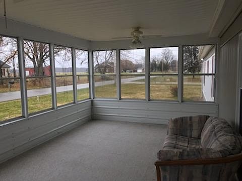 Edge of town! Very nice mobile home with glassed-in, 20x12 sunporch to enjoy throughout the seasons, 2 bedrooms, remodeled bathroom, eat-in kitchen with breakfast bar & appliances to stay, all furniture included & washer & dryer, detached 1.5 car garage & storm shelter, situated on 0.437 corner lot.