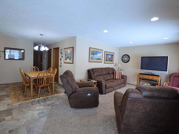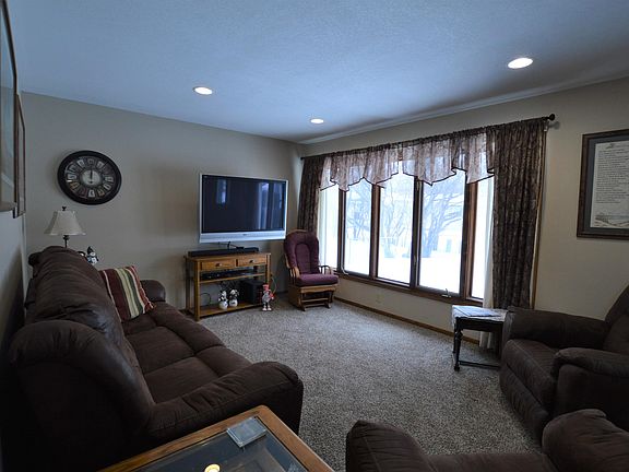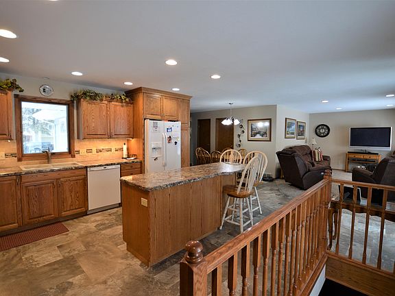 What a great location! This 4 bedroom 2.25 bath ranch homes features an open floor plan with patio doors to the deck perfect entertaining. You will love the updated kitchen with custom cabinets, tiled back splash, under cabinet lighting and sit-up island. There are 3 bedrooms on the main floor with full bath and Master Bedroom features a half bath. In the lower level you will find the large rec-room complete with kitchen area the perfect place to watch your favorite sporting event or movies with family & friends. There is a 4th bedroom with egress window, .75 bath with heated floor & large storage room. Updates include kitchen cabinets, flooring, pex plumbing, electrical panel, A/C unit, furnace, remodeled basement with new sheet-rock and insulation all done in the last 5 years.