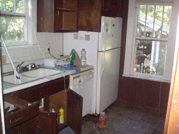 Good size yard. Detached two car garage. Home requires complete clean out and rehab. The house is located in a nice suburban area. Hardwood flooring throughout will need to be resurfaced. Brick fireplace. A complete clean out is necessary. Basement seems to be dry.Sold As-Is.