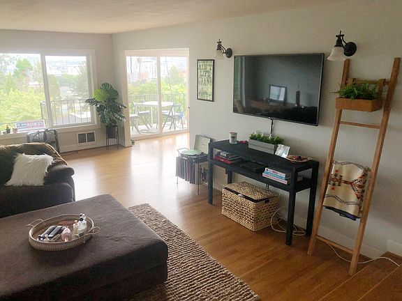2 bedroom, 2 bathrooms, 1200 sq feet. Wall of windows and patio with a view of downtown that you have to see. Hardwood throughout most of unit with new carpet in bedrooms just put in. Short walk to downtown, Max and Providence Park. Unbeatable downtown freeway access. 2 dedicated off-street parking spots just 20 feet from your front door included in rent and street parking is available for guests as well. Unit has its own washing machine and dryer. Xfinity extended cable package, water, sewer and garbage as well as two off-street parking spots right off the front door all included in monthly rent. Tenant pays electric and internet.