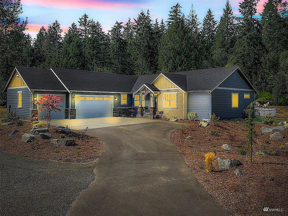 Make this awesome Craftsman Rambler your new home! Situated on private 2+ flat acres, you're going to love the easy one story living floor plan, the location and top end finishes! Located near McCormick Woods, Shopping, recreation and Community Maritime activities! Designer select interior, Rich wood cabinetry, Quartz counters, stainless appliances, and trim package. Beautiful master suite with tile shower and soaking tub! The home now also features a heat pump with AC, newer front landscaping with sprinkler system, and brand new carpet!!