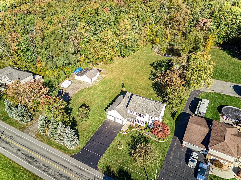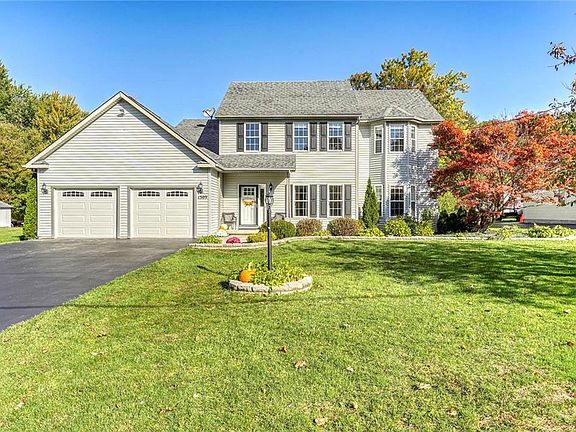 GORGEOUS 2+ACRE SETTING FOR THIS EXCEPTIONAL CUSTOM-BUILT HOME! LOVINGLY CARED FOR BY ORIGINAL OWNERS! 2,135 SF W/ADDITIONAL LIVING SPACE IN PROFESSIONALLY FINISHED BASEMENT/REC-RM! 4-BEDRMS *2.5 BATHS *DRAMATIC 2-STORY FOYER/ENTRY W/TILE FLOORING *BEAUTIFUL EAT-IN KITCHEN W/QUALITY MAPLE CABINETRY, QUARTZ COUNTERS, HARDWOODS, SLIDER TO BACKYARD DECK . . .OPENS TO H-U-G-E GREAT RM W/BAY WINDOW & HIGH-END GAS FIREPLACE! SPACIOUS FORMAL DINING W/HARDWDS *1ST FLR LAUNDRY & HALF BATH *2ND FLR MASTER SUITE W/BAY WINDOW & IMPRESSIVE TRAY CEILING! MAPLE & QUARTZ VANITY W/J & J SINKS, TILE FLOOR *3-GENEROUS KIDS/GUEST BEDRMS *UPDATED MAIN BATH W/QUARTZ & MAPLE, TILE . . .NEW CARPET IN BASMT *SEC.SYSTEM *TANKLESS WATER HTR (2018) *C-AIR *PERMANENT GENERATOR *OVERSIZED GARAGE (770 SF) W/NEW OVERHEAD DOORS, GARAGE/ATTIC STORAGE *X-LG DETACHED GAR (864 SF) *VINYL SIDING *AMAZING LANDSCAPE! REFRESHED DECK W/PVC RAILINGS *PUBLIC SEWER *INCREDIBLE PRIVATE BACKYARD W/STOCKED POND, DOCK . . . BACKS TO FOREVER WILD!!