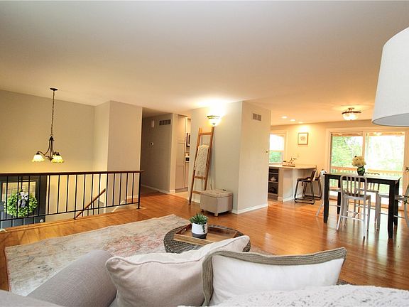 This property is a beautiful split level home located in Mt. Lebanon, known for its convenient location! The kitchen has been newly updated and features stainless appliances, an island with seating and a wine fridge. The home has hardwood floors throughout the kitchen, dining area and family room. The dining area opens up to a beautiful and peaceful private deck that overlooks the treetops. The main level features a primary ensuite bedroom with two additional bedrooms and a full bath. The spacious laundry room with storage is located on the lower level, along with a partial bath, a game room with walkout access to the fenced in backyard and home office or additional bedroom with a brick fireplace. The property is located on a quiet street with the neighborhood park just a stone’s throw away. It is also close to The Galleria Mall, Fresh Market and a wealth of other amenities.
