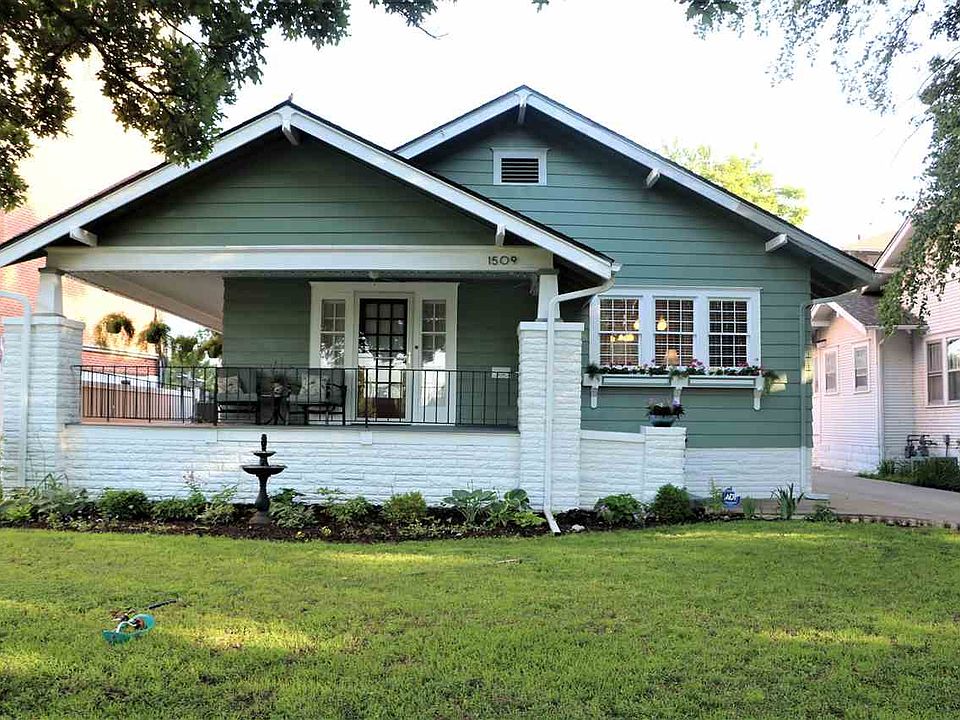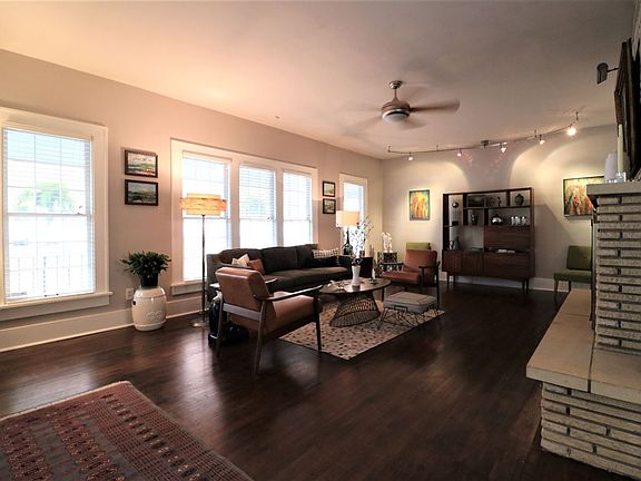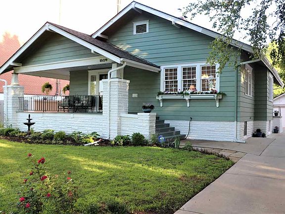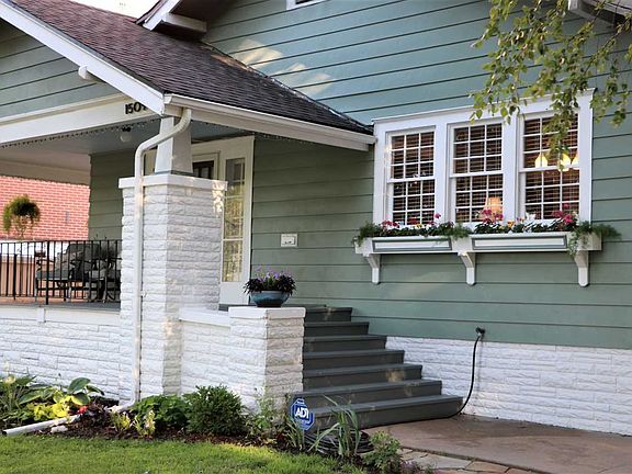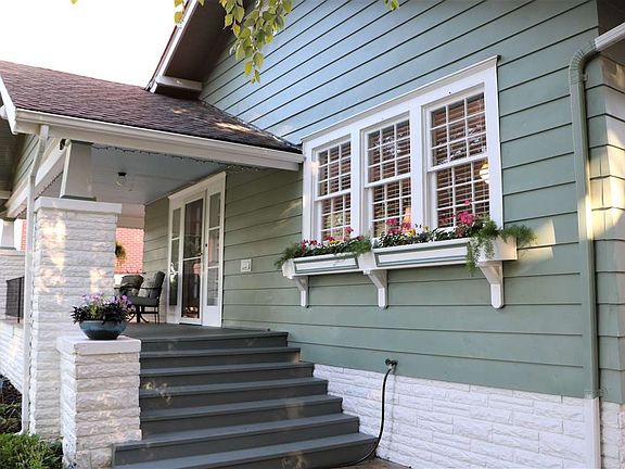 Relax on the wrap around front porch with a fabulous view of the river and Oak Park without the traffic. The view is also great from the many windows in the living room and dining rooms. The main floor has a woodburning fireplace (not used by current owner or inspected) in the spacious living room, formal dining room, retro kitchen, wood floors, updated bathroom and a master bedroom with lots of built ins. The basement has a nice family room with lots of shelves and cabinets, an office with 2 closets and large basement windows, a bath and a large storage room. There is plenty of parking out back a garage and fenced yard. Kitchen appliances stay and were new in 2016. Basement bedroom windows may not meet code .