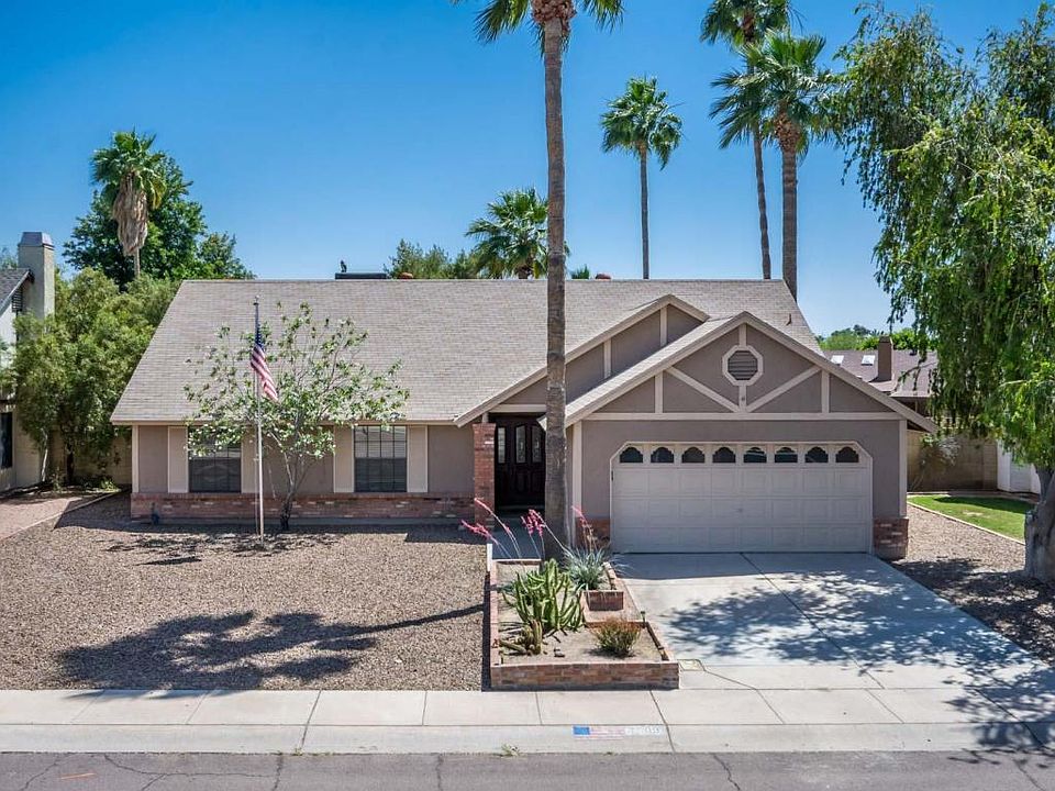 Opportunity knocks with this family pleasing home! Home delivers a perfect combination of size and budget pleasing price. Open the door to your home and see brand-new 18 inch tile, freshly refinished wood flooring, open floor plan with vaulted living spaces, rich paint tones, fireplace, and dramatic plant shelves. Kitchen has lots of counter space, walk-in pantry, breakfast bar and terrific view into Arizona room and pool. Master bedroom has his and her closets. Not only that, but patio has been converted to tiled Arizona Room complete with wall mounted air conditioner unit to help you avoid the summer heat! This is the one for you! How soon can you move? Buyer to check schools if materially important. Full size floor in documents section of the Arizona MLS.