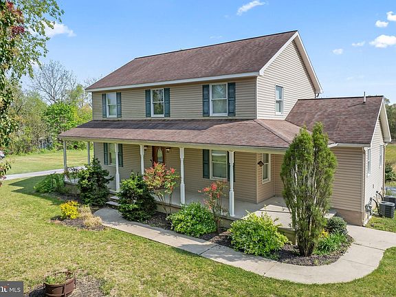 This unique 2-story, 4-bedroom, 2.5-bathroom home sits on almost 6 acres and has an oversized 2 car detached garage / pole barn with extended storage space. From the front wrap around porch, you may enter through the front door into the foyer with hardwood flooring or conveniently access the mudroom. The living room is spacious and has a large bay window overlooking the picturesque backyard. The kitchen has ample oak Kraftmaid cabinetry, granite counters, an island and sliding doors that lead out to a huge back deck. The first floor also has a home office / dining room, mudroom / laundry room, and a half bathroom. On the second floor you'll find the primary bedroom with an updated ensuite bathroom & walk-in closet, three additional nicely sized bedrooms and a full bathroom in the hallway. The basement has 9 ft ceilings, was built with poured insulated form concrete, provides a bonus room with egress, tons of storage space and the rough-in for a future bathroom. This home has a dual HVAC system and 200-amp plus an additional 100-amp electric service. Call now to schedule your appointment!