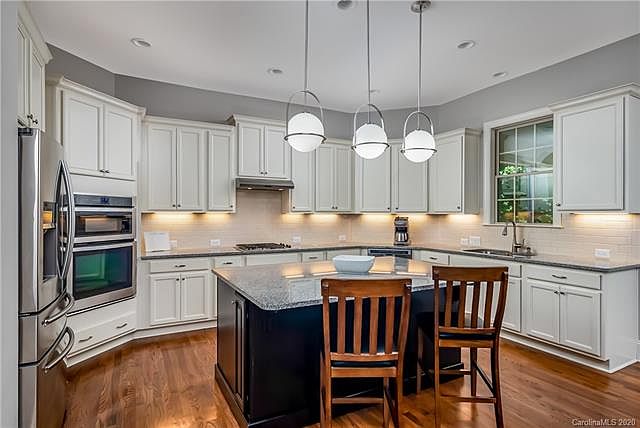 Rare opportunity to own a move-in ready John Weiland home on a one acre, cul de sac lot in a gated community in Weddington!! Unfinished walk-up third floor could add an additional 800 square feet. One year old trex screened porch (20x20) and deck (20x18) with built-in storage benches -has been permitted! Enjoy a stunning and immaculate, fully updated home complete w/ hardwoods throughout, built-ins in living room and 2nd floor hallway, 3 walk-in closets in the master bathroom, wet bar, gas cooktop, and neutral paint on a private wooded lot. There is so much to love about this home- it is a must see!!