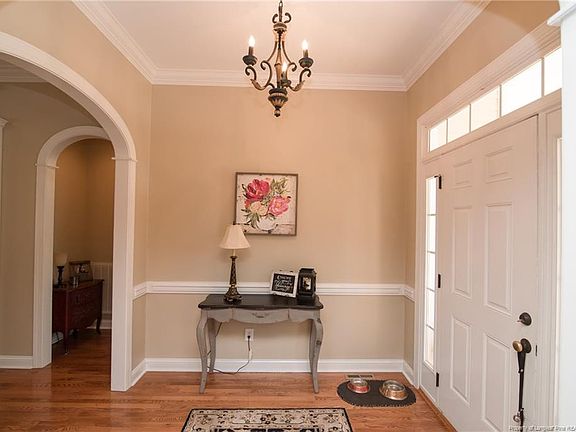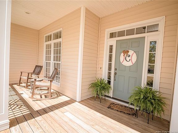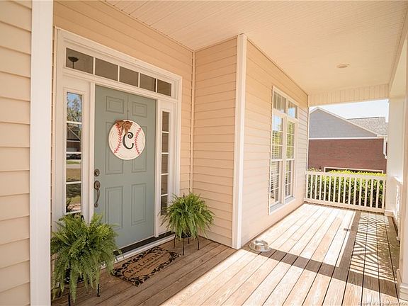 Look no further! Don't miss out on this gorgeous home in desirable West Landing! You will fall in love with this great house from the minute you step onto the front porch, which is perfect for rocking chairs, your morning coffee and evenings with the family and neighbors! This split floor plan home features 4 bedrooms, 3 baths, large den with fireplace and gas logs, beautiful kitchen with SS appliances and a separate breakfast room, dining room with coffered ceilings, arched doorways, real hardwood floors, bonus room, two-car garage, deck with Trex decking, separate patio, and a level backyard perfect for playing baseball and soccer with the kids! The master bedroom has trey ceilings, big windows with lots of natural sunlight, en-suite bathroom with separate shower and tub, double sinks and a nice large walk-in closet! The neighborhood also has a community pool and a lake! Close to US1, 15/501 and shopping! Hurry to schedule your showing! You don't want to miss it!