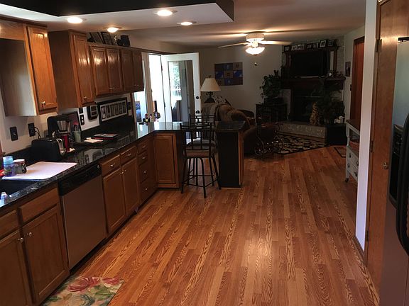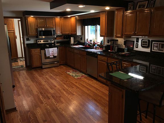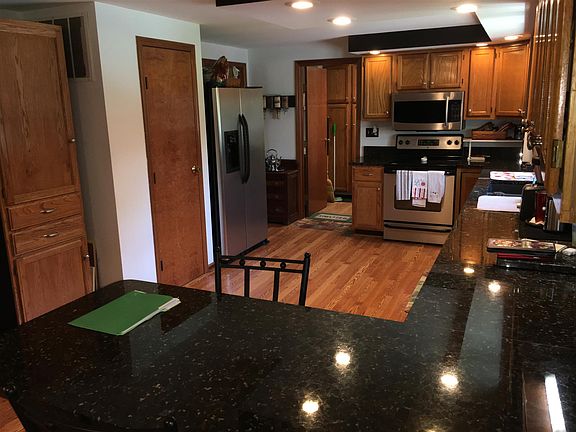 - Kitchen Features: Wood Cabinets, Country, Pantry, Counter Bar, Solid Surface Ctr, Laminate Floor, Walkout