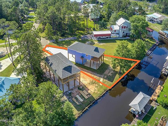 Quality of construction shows!!! 15 minutes from OLD TOWN BAY ST. LOUIS. Gorgeous new construction on large lot in cul-de-sac. This 3 bedroom 2 bath camp style home offers tons of great custom features including open concept living room/kitchen area, 9' ceilings, maintenance free waterproof, vinyl plank, shaker style cabinetry throughout, set gorgeous granite counter tops, and stainless steel appliances. The large windows and French doors, provide a great view of the deep water canal! The spacious back porch overlooks 95 front feet of waterfront property as well as a mature cypress tree, and from the home's location on the deep water canal it's just a 5 minute boat ride to the Jourdan River. Drive under parking can accommodate you cars, your boat and trailer, or even your golf cart, and the extra storage room is a wonderful feature many camps are lacking. Jourdan River Shores subdivision also offers tennis courts, a boat launch, swimming pool, and a club house! Call today to request the 3D Virtual Tour Link to virtually walk through this home or to schedule your private showing.