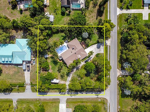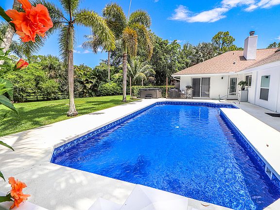 This CBS 4/bed 3/bath home with a pool sits on a 1.15 acre corner lot that is conveniently located on two paved roads with easy access into and out of the neighborhood. The open floor plan features two master bedrooms, two oversized secondary bedrooms, a sitting room brightened by three Palladian arched windows, a breakfast nook facing the heated saltwater pool, a wood-burning fireplace, and an enclosed and air-conditioned Florida room. The home has two newer A/C units, a 2-car garage with an electric charging station, a central vacuum, a backup generator, and 2 air-conditioned workshops, which can serve as man caves, crafting stations, tool sheds, or woodworking shops. The landscaping provides privacy from neighbors through thick coverage comprised of mature, tropical, native Florida trees and shrubs. You can enjoy both shaded areas for picnicking and full-sun open space for your vegetable and flower gardens. The oversized serene and lush lot will make you feel like living in a nature park. Palm Beach Country Estates is one of the last remaining locations in Palm Beach Gardens where you will find properties over an acre, no HOA, and city water. It is located just over 10 minutes from the beach and about 3.5 miles from the Alton shopping plaza, Publix, and Abacoa, where you can enjoy golfing, watching spring training for the St. Louis Cardinals and Miami Marlins, and plenty of dining and entertainment options.