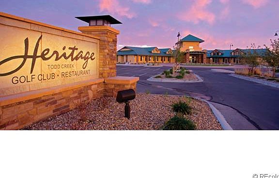 You won't believe this Hepburn floor plan on the golf course by Lennar homes! Your new ranch plan is located in the desirable Heritage Todd Creek, home to award winning golf club and active adult community w/ tons of recreational activities, trails & more to offer! Gleaming hardwood flooring ushers you into the home and leads you to the state of the art kitchen! Shiny Slab Granite countertops, stainless appliances & features such as a double oven perfect this kitchen! The main floor is 9ft tall including the Great room w/ bright windows! The master suite welcomes you with tall ceilings & a luxurious master bath w/ Granite countertops & ceramic tiling. Your walk in closet has all of the room to accommodate any extras. There's room to expand in your full unfinished basement w/ 9 foot ceilings! This home is being constructed and ready for you to move in during August! Stop by the sales office and make this one yours! Photos are of model home.