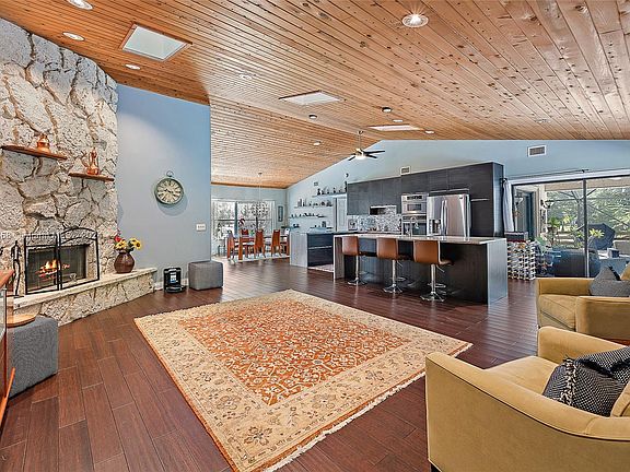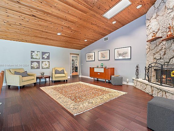 This stunning 4-bedroom, 3-bathroom home is beautifully designed with an open floor plan that merges comfort with style, making it immediately welcoming. The interior offers bamboo flooring, high cedar vaulted ceilings, and a kitchen equipped with modern appliances and a large island that serves as the centerpiece for hosting dinners and gatherings. The spacious family room is a standout feature, offering a versatile space for both relaxation and entertainment. The massive screened-in patio is an ideal venue for gatherings. The backyard is dotted with fruit trees—cherry, banana, mango, and papaya—enhancing the home’s charm. The property includes two large driveways that offer ample parking space.