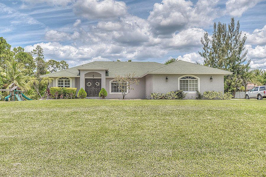 This spacious CBS block home is a must see! Located on 1.15 Acres of land that is fully sodded and equipped with working sprinklers. The interior features an open floor plan with vaulted ceilings. The kitchen is updated with newer appliances, reverse osmosis drinking water system, and Corian countertops. Custom blinds throughout the entire home, and a wireless home security system. Freshly painted interior and exterior. Location is key! The home is right of Northlake Blvd just off a paved road. Easy access to Beeline and Seminole Pratt Whitney.