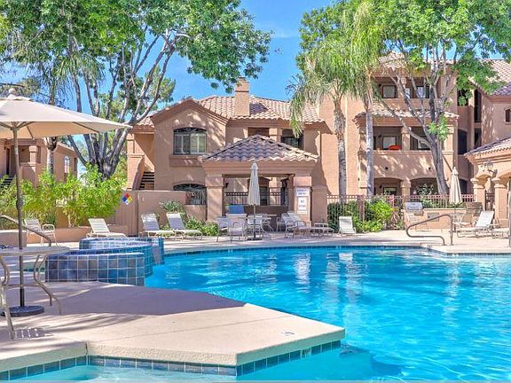 **Available August 13, 2021** Location, location! This beautiful ground floor unit with resort style living is located in North Scottsdale. It is close to shopping, bus access, parks and freeway. Features include: wood plank flooring, in unit washer and dryer, refrigerator, dishwasher, microwave and private patio with storage closest. Must see to appreciate. 12 month minimum term. Lease payment includes water / sewer and garbage. Non -smoking unit Pets OK with lessor approval and deposit of $250.00 Fully refundable security deposit $1,600.00 Non- refundable cleaning deposit $350.00 Available August 13, 2021 or sooner
