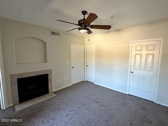 Beautiful Complex in great a location with pools & and fitness center close to restaurants, 101 freeway, Top Golf, and shopping. 2 bedroom 1 bath condo with an open floorplan. Kitchen has a breakfast bar, black appliances, pantry and a dining area, Large living room with a ceiling fan and a balcony. 2nd bedroom has French doors. Master bedroom has its own balcony, fan, large walk in closet, and fireplace. Bathroom has double sink and a tub/shower. Washer and dryer is included. There is some storage on the balcony off of the living room. $200 one time admin fee and a monthly admin of 2.15%. 12 month minimum