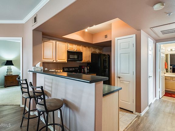 Great North Scottsdale location, in close proximity to golf, entertainment and dining! Beautiful condo with dual masters and walk in closets! Plank flooring and tile in the common living areas, with carpet in all the right places. Spacious living area has fireplace and access to private balcony. Kitchen boasts breakfast bar, wooden cabinets, laminate counters and black appliances and enclosed pantry. Spacious laundry space off kitchen. Spacious primary bedroom has primary ensuite bathroom, and provides secondary access to the balcony. Both bedrooms with walk in closets! Enjoy all this community has to offer, including multiple pools, spas, saunas, a gym and a clubhouse! . Easy access to the 101, TPC and Westworld. Cable TV and Internet included with HOA fees.