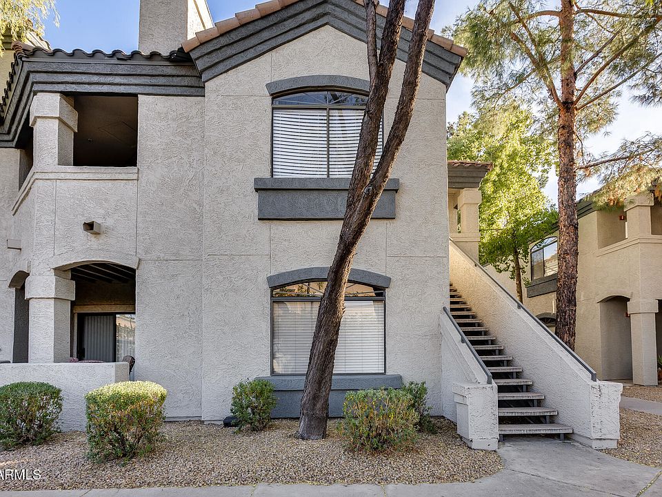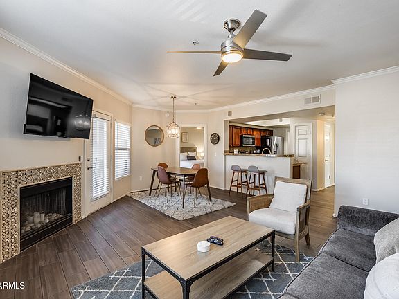 This charming 2-bedroom, 2-bathroom apartment style home offers a perfect blend of comfort and convenience in a vibrant, sought-after community. With its spacious living area, cozy fireplace, and stylish wood-look tile flooring, this home creates a warm and inviting atmosphere. The large dual-pane windows fill the space with natural light, enhancing the open, airy feel. Both bedrooms feature en-suite bathrooms, and the property is short term rental approved, making it ideal for a family or as an investment property. Enjoy resort-style amenities including a clubhouse, pool and spa, fitness center, and more. With assigned parking, this home combines functionality with lifestyle in a prime Scottsdale location!