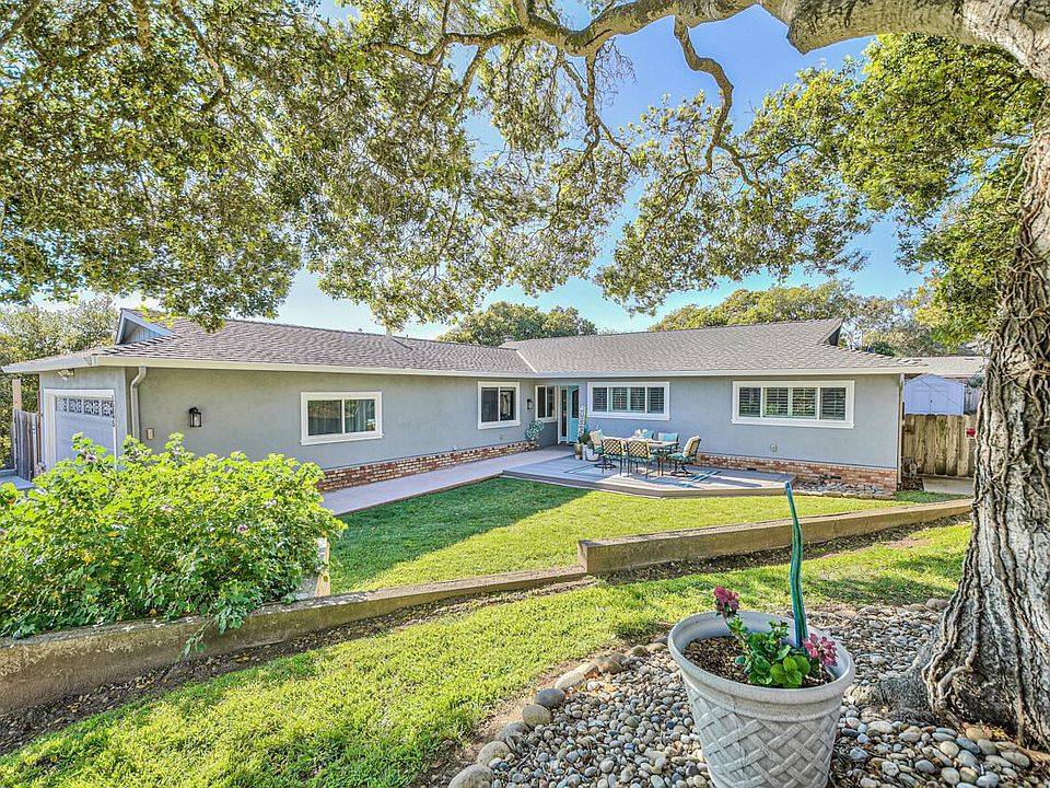 Nestled amongst majestic oaks, on a verdant 1/3 acre lot, sits this tastefully remodeled & meticulously maintained dream of a home. From the moment you enter a sense of peace & tranquility enfolds you. There is nothing to fix, nothing to improve, nothing to do but enjoy the gloriously peaceful & private backyard, prepare a bbq on the side patio, tinker with the car on the expanded car/boat pad, relax under the gazebo on the spacious back patio & soak in the luxurious hot tub. Indoors you will appreciate the well-planned kitchen with custom built maple cabinets, new appliances, quartz counters, pantry cupboard & island. The open plan great- room works perfectly for intimate gatherings and the additional spacious living room, with built-in cabinets & fireplace, allows for large scale entertaining. Both areas open to the patios for a seamless flow of indoor/outdoor living. Primary suite offers 2 closets and the remodeled bathrooms boast custom cabinets & quartz shower walls. Other recent upgrades include a new front door, vinyl windows with plantation shutters, new furnace with Accu clean filter, water heater, PEX plumbing, lighting, flooring, wall & attic insulation, exterior stucco, interior & exterior paint, hot tub with dedicated 220v, expanded driveway and more.