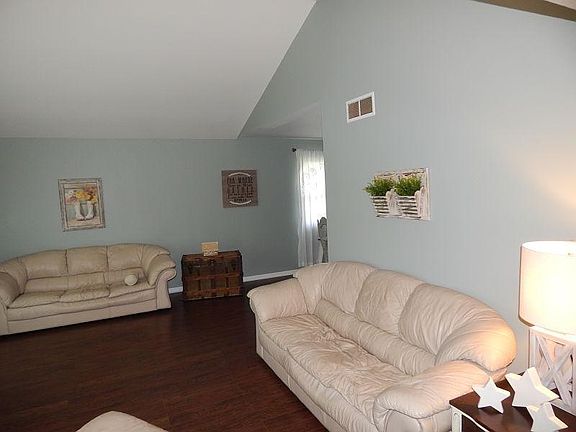 Turn the key & move right into this Open Concept Ranch w new flooring throughout, remodeled kitchen and baths, Family rm w Cathedral ceiling(like LR), new ceramic tile flooring, stone surround NFP, new patio doors to backyard, big kitchen w new countertops, Living/Dining room 'L', 3 good sized bedrooms, full bath w tile surround SOT and H/H sinks, full clean and dry basement ready to finish, 2 car attached garage & short walk(2 lots away)to Regal Park(nearly abuts big backyard).