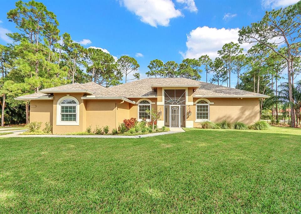 Beautifully maintained single-family home available for annual rent in desirable Palm Beach Country Estates. Situated on over an acre of land, this spacious residence offers 3 bedrooms plus a den, 2 full baths, and an oversized 2-car garage. The home features ceramic tile flooring throughout, a screened front porch, and a large screened patio perfect for relaxing or entertaining. Enjoy the privacy and space of country-style living with all the conveniences of Palm Beach Gardens just minutes away.