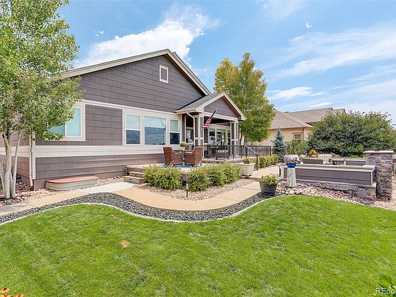WELCOME HOME to your DREAM HOME on the Golf Course with Mountain View! As your enter you will fall in love with the open floor plan that is perfect for parties or family gatherings. Designer vinyl plank flooring flows throughout the great room, kitchen, and dining areas. Beautiful white cabinets and granite counters accent the kitchen, which is complimented by a custom tile backsplash and a stainless steel range hood. Just off the kitchen, you can relax in the cozy hearth room, which offers a second fireplace and built-in window seats- the ideal breakfast nook or family room. A formal dining area provides plenty of room for family holidays and features french doors that open to the rear patio. The fabulous great room is open and large enough for entertaining and is accented by a lovely wood mantel, entertainment area, and another gas fireplace. The primary suite is extra roomy and features a 5 piece bath; while the 2nd bedroom and bath are just down the hall. The finished lower level is where everyone will gather to watch their favorite movie in the home theater or play a game of pool or ping pong perhaps. Another bedroom, storage room, large bath and kitchenette complete this ideal place for family fun or out of town visitors. The professionally landscaped yard is your outdoor playground with an outdoor kitchen, and a multi-level patio complete with a fire pit and coy pond. This amazing home is located on the 10th fairway of the Todd Creek Golf Course with the clubhouse just around the corner where you can enjoy an abundance of neighborhood clubs, card groups, two pools and a hot tub, or work out in the fitness room. After a hard day at play or work, you will want to meet your friends for happy hour in the restaurant or enjoy one of the many entertainment activities offered by living in this amazing 55+ community. With over 50 clubs and a clubhouse filled with activities, you will stay young and never be bored living in Heritage Todd Creek.