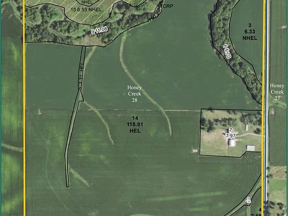156 acres in Iowa County N of Victor. 126.14 cropland acres with a 79.83 CSR2. 6.73 acres enrolled in CRP.