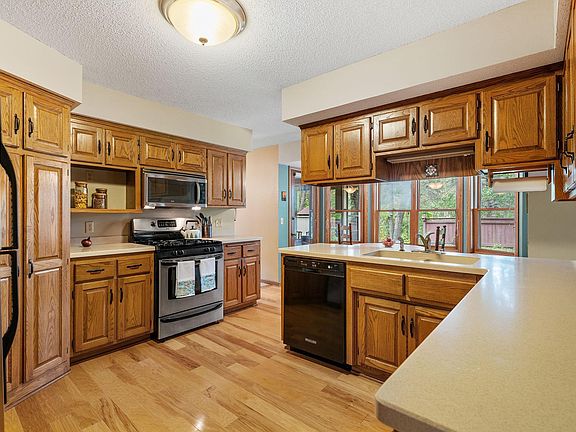 Lovely modified 2 story on Burl Oaks Park.. Awesome location offers baseball games, basketball fun or watch your kids on the play structure and swings directly behind your lovely home. Enjoy your morning coffee in delightful sun porch, soaring vaulted ceilings in living room and foyer with loads of light from south facing windows. Imagine winters 1st snow fall from the warmth of a crackling fire in the family room that opens to the kitchen. Primary bedroom w/ private bath, amusement room down ready for ping pong, darts, etc. Oversized double garage with a new concrete driveway, newer architectural shingled roof in 2019, new water heater 2021 - Ready to move in and enjoy!!!