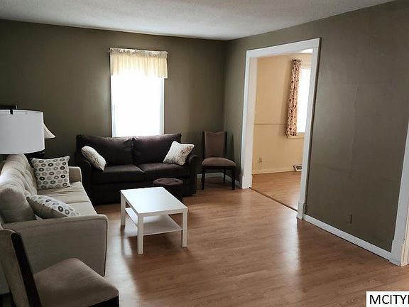 Move in Ready 3 bedroom 1 1/2 story home. Metal Siding. Newer vinyl replacement windows throughout the home. 2 stall oversized garage with bonus shop area. Full bath, plus an extra shower and sink in lower level. Very cute home. Main level Living Room, Dining Room, and Kitchen. Finished enclosed 3 season front porch, perfect for relaxing. Hardwood floors throughout with laminate overlay. 3 bedrooms upper with generous built-ins for dressers/storage. Lower level family area. Lower level laundry room, which includes a step in shower and Laundry Sink. Lower level storage room plus a lower level shop room. Medium sized rear yard. Metal garden shed and concrete slab. Alley access.