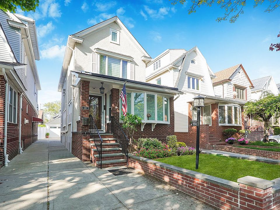 Bay Ridge-Absolute move in condition one family fully detached home, 3 bedrooms, 2.5 baths, **PRIVATE DRIVE** on beautiful Bay Ridge block, First Floor-Enclosed porch, living room, dining room, gleaming hardwood floors, modern eat in kitchen, half bath, sliders to yard, Second Floor-primary bedroom with vaulted ceilings and double closet, middle bedroom with custom storage, rear bedroom has two single closets, modern full bath with soaking tub, separate shower and vaulted ceilings, Attic-storage area, Basement-full finished with side entrance, full bath, washer dryer hookups, gas heat and hot water, extra closets and storage area, rear entrance, private yard has rear composite decking with pool, solar panels, split unit and wall AC's, many more extras, seller can accommodate quick closing, House Size 16'x56' (first floor), 16'x40' top floor and basement, Lot Size 28'x100', Year Built 1920, Taxes $10,892 (some photos have been virtually staged)