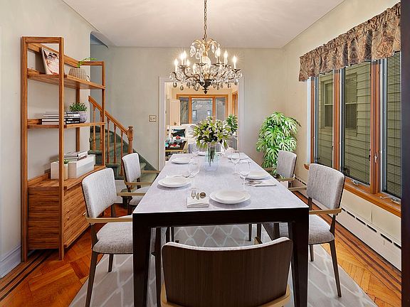 Welcome home to this incredible 4 bedroom, 2 bath and garage Single Family House just off Shore Road! Upon entering the sun-filled foyer one is greeted with an inviting sun room that leads to a large living room. You will delight in prewar charm consisting of the high ceilings, moldings and hardwood parquet floors. From the Living Room there is a seamless flow into the Large Formal Dining Room. The Dining Room is large and accommodating with plenty of space for a large dining room set. Just off from the dining room is an Eat-In Kitchen with a built in break fast nook or room for a dining table if you so desire.