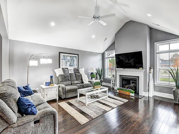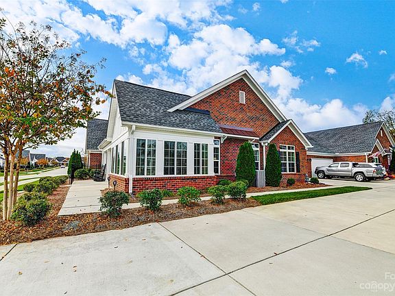 Care free living in a desirable Augusta Place of the Laurel Creek Community. This home is impeccably clean and has been extremely well maintained. Shows like a brand new model home. Lots of vaulted ceilings, custom paint, 2 sun tunnels, spacious primary suite and a large storage area. 2 bedrooms PLUS den and large sunroom. Gas fireplace in living room. Wood floors throughout. Finished garage with epoxy floor. Prime location right by pickleball courts, clubhouse and garden. Community also has miles of shaded walking trails, a pool, tennis courts. All within a couple miles of I-77.