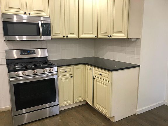 Like new! Entire first floor of a lovely rebuilt 2 family. The house sits on a spacious, fenced in lot with paved driveway for off street parking. This 2 bed/1 bath unit has an extra bonus room for an office or 3rd bedroom. Features a beautiful, light and bright living room with vaulted ceilings, updated tile bath, updated kitchen with SS gas oven and appliances. Gas heat, central air and security camera link make this unit economical and safe! Near all major highways making this a great location for commuters! Credit check, 1 month security and 1 month rent. Tenant pays for credit check, gas, electric, cable/internet,