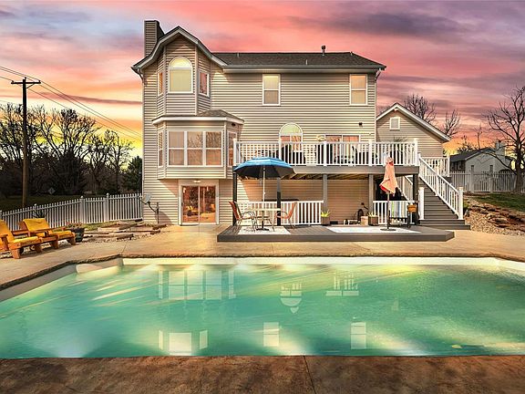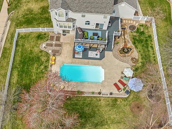 RESORT-LIKE, private, fenced backyard w/large INGROUND POOL, waterfall, pond, spacious patio, deck, plus grass space just begins to describe all this GORGEOUS 2 sty in HUNTLEIGH MEADOWS offers * UPDATES: 2022 new carpet; 2021 low maintenance TREX deck, NEW ROOF; 2019 Kitchen, Luxury Plank floors on main level; 2018 ZONED HVAC, Master Bath remodeled incl shower enlargement and MUCH MORE * Well-maintained Home features 9 ft ceilings, MFL, T-stairs, Solid surface counters, 42 inch cabinets, SS appliances, bay windows, gas FP, recessed lights, B-fast area * Upstairs has Master Suite w/2 closets & luxury bath, BR#2 w/private bath, generous size BR#3 & 4 and hall bath * Deep pour W/O basement, sliding doors open to great outdoor entertaining space * Brick & vinyl exterior, professional landscaping, in-ground sprinklers, 1/3 ac yard * POOL is OPEN for New Owners * Walk/bike 2 blocks thru subdivision to KATY TRAIL * Easy access to 94 & 364/Page * Francis Howell Schools * Refrigerator, W/D stay