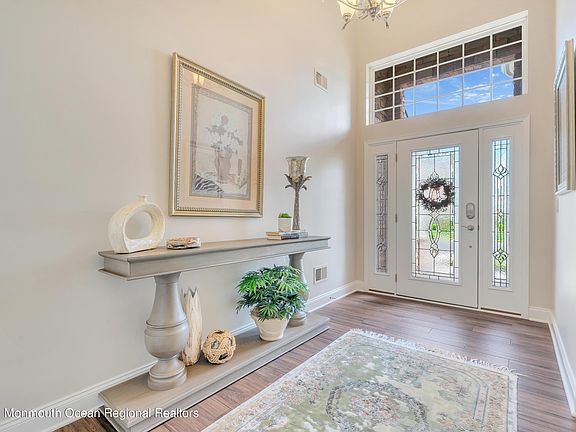 BETTER THAN NEW!! Only 4 years old and located in desirable Sea Breeze adult community in Forked River. This rare find allows for a private backyard with no rear neighbors. This beautiful Binghamton model is gleaming with light and plenty of upgrades. Details shine throughout the home with crown molding, tray ceilings, wide plank tile flooring, chandeliers, plantation shutters, and other exquisite architectural features. The home's stone front exterior and inviting glass front door pull you inside to the open foyer that immediately gives the feeling of elegance. Enjoy the open and airy feel of the main living area with plenty of room to entertain guests in your updated kitchen, dining, and living areas. Home is a secondary residence and hardly used. Come see for yourself!