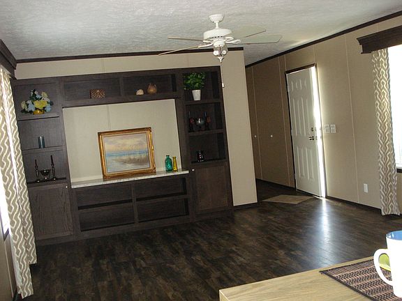 2016 Clayton Fusion 16X60, 2 Bedrooms, 2 full Baths, new appliances, covered front porch, gutters, mini-barn. Gas heat, C/A. Home site backs up to the woods.