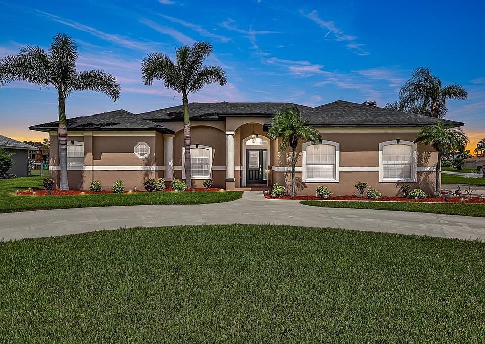 Nestled on a picturesque corner lot at 151 Avery Dr E in Auburndale, this beautifully maintained 4-bedroom, 2-bathroom home, built in 2000, offers a perfect blend of elegance and comfort. With a new roof and fresh exterior paint, the home exudes curb appeal from the moment you arrive. The circular driveway and side-load oversized 2-car garage provide ample parking, while the lush new landscaping, framed by towering palm trees and enhanced with outdoor lighting, creates a tropical and welcoming ambiance. Inside, the home features a split-bedroom floor plan that ensures privacy and a spacious layout for comfortable living. The master suite is a peaceful retreat, boasting newer hardwood floors, dual walk-in closets, and a spa-like bathroom with a garden tub, walk-in shower, and dual sink vanity. The open living spaces include a formal living room and a cozy family room with a wood-burning fireplace—ideal for relaxing evenings at home. The heart of the home is the kitchen and family room area, perfect for daily living and entertaining. Outside, you'll discover your private outdoor paradise: a large, screened-in saltwater pool with a heated spa, perfect for unwinding or hosting guests. The outdoor kitchen adds to the entertainment space, complete with a bar top, built in grill, and outdoor mini fridge, it'd the perfect place to enjoy outdoor living year around. Located just minutes from I-4 and the brand-new Publix, this home offers convenience while being situated in a nice, quiet neighborhood with **no HOA** restrictions. Whether you're drawn to the stunning outdoor spaces, the beautifully designed interior, or the peaceful surroundings, this home delivers the perfect balance of comfort, style, and freedom.