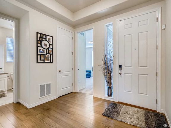 This lovely Graham ranch plan is located in highly desired Castle Pines! You will enjoy a very open ranch floor plan that features a chef's dream kitchen and a luxurious master suite. The chef's dream kitchen includes granite countertops, a large island, pantry, gas stove and 42" cabinets. Everything you could want in a kitchen! This kitchen opens into the light and bright great room with hardwood floors and a gas fireplace. This floorplan is amazing for entertaining! In the master bedroom suite you will find coffered ceilings, windows on both sides of the bedroom and a ceiling fan. The attached master bathroom features a tile floor, dual vanities with a slab granite countertop, a walk-in shower with a seat and a separate soaking tub. As you continue through the master bath, you will move into a large walk-in closet. In addition, there are two nice-sized secondary bedrooms and a second full bathroom also all on the main floor. There is tons of natural light throughout this home with the many windows that it has. Main floor laundry and mud room make for ease of daily living. The walkout basement in the lower level has plenty of room for future expansion since it is a full basement with 9' ceilings. As a bonus, the drywall has already been completed in the basement to help get you started. For outdoor living, the home has both a covered deck off of the dining area and a covered patio below accessible from the walk-out basement. No monthly HOA dues since they are included in the property taxes. Very easy access to I-25 and Castle Pines Parkway. Experience Castle Pines with its rolling hills, excellent Douglas County schools, family-owned restaurants, recreation and shops that are all just minutes away. No need to wait for a new build, when this home is turn-key and ready for immediate move-in. See this one today!