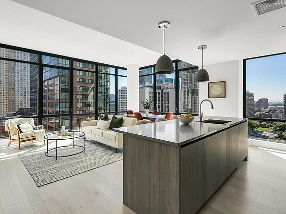 New Construction! Be the first to live in this home in the sought after 151 Bay Community. (Physical address 155 Bay Street) This spacious 3-bedroom, 2-bathroom corner unit offers views for days! This unicorn home offers sun-filled eastern and southern exposures, extra-height 10ft ceilings and floor-to-ceiling windows with stunning views of the Hudson River and New York Harbor. This space is great for entertaining and family living featuring a huge kitchen island, which seats up to five people, and the modern kitchen is cleanly appointed with premium Thermador appliances. The primary suite features more stunning river views, a walk-in-closet equipped with custom organizers, an ensuite bathroom with dual marble sinks and large shower. This home also has hardwood floors, extra closet space, and a large washer and dryer in unit.