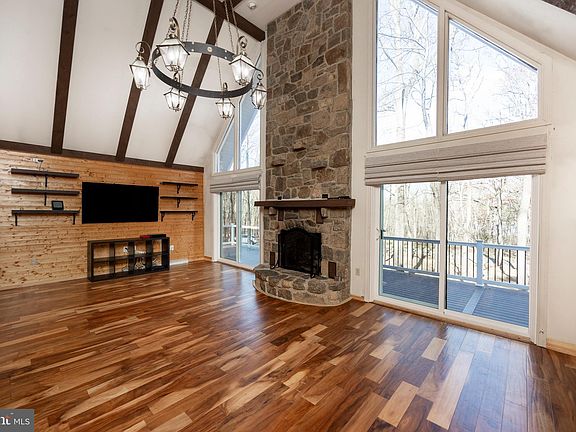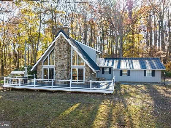Welcome to 151 Bollinger Road. This contemporary A-Frame residence boasts 3 bedrooms, 3 baths, and sits on 6.6 acres of secluded, wooded land in West Nantmeal Township. It features both an attached and detached garage which could accommodate 4+ cars. As you approach the entrance, you'll immediately spot the newly installed maintenance-free wrap-around deck and a fresh metal roof. Inside, the ambiance is akin to a genuine cabin, with wooden planked walls and ceilings creating a cozy atmosphere. On the left side, you'll find the impressive Great Room, complete with a floor-to-ceiling stone gas fireplace, a soaring cathedral ceiling, and tons of windows and sliding glass doors offering stunning, panoramic views and tons of natural light. The expansive Great Room seamlessly connects to the Kitchen, which features Granite countertops, a central island with an electric cook-top, stainless-steel appliances including a dishwasher, wine refrigerator, and French-door refrigerator, alongside a wall oven and a double bowl sink. Moving down the hall from the Kitchen, you'll find a convenient tiled hall bath with a shower/tub combination, as well as the Primary Bedroom, boasting an ensuite bathroom and a spacious walk-in closet. The Primary Bathroom showcases two beautifully appointed vanities with decorative sinks and a tiled shower. Rounding off the first floor is a well-equipped laundry room featuring a utility tub, two closets, and direct access to the 2-Car Garage. ( Currently part of the garage has a temporary office space which could be taken down and converted back to garage space) Ascending to the Second Floor, you'll discover a Loft that overlooks the Great Room, boasting its private balcony. Additionally, this level features a tiled hall bath with a shower/tub combination, linen storage, and two bedrooms. Notably, one of these bedrooms offers its private balcony. Adding to the allure of this residence is the partially finished basement, complete with a stone fireplace featuring a wood insert, ample storage space, and convenient walk-up stairs leading to Bilco doors that open to the side yard. Among the property's amenities are a central vacuum system and a hard-wired generator. Furthermore, there's a detached 2+ car garage accompanying the home. Don't miss out on making this unique home yours!