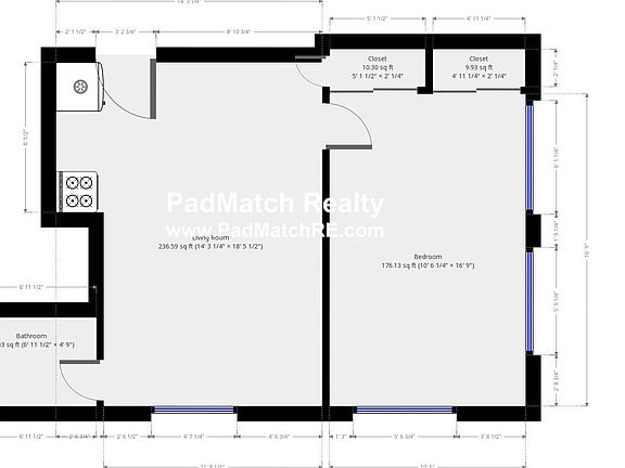- Total interior livable area: 600 sqft