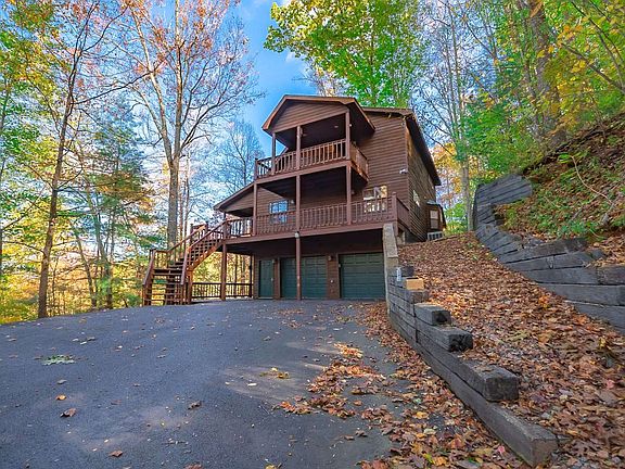 Just reduced $20,000,Beautiful 3 bedroom 2 bath cabin on 3 secluded wooded acres with year around mountain view. Kitchen & bath have new granite countertops, and the home features wood floors with a wood burning stone fireplace in the living room. Upstairs you have a lovely master suite with a balcony and long range view. Basement is stubbed for an additional bath. All new rustic beds, mattresses, art work, area rugs & accessories are on sight and available for purchase under separate contract.All new Lighting, ceiling fans and paint and exterior has all new stain and sealer. Home would make a great part/full time residence, or an excellent rental property. Seller says bring all offers