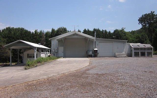 Very Unique property! 2 small dwellings surround nice garage. Automotive Garage features trolley overhead hoist and one indoor hydraulic floor lift and one outside car lift. Garage also has Kitchen,full bathroom with shower and washer & Dryer hook up. Sectioned off room in garage is perfect for spray booth. Lots of out buildings for storage and a storm shelter! Large wood burning stove outside that heats garage and lowers heating costs in colder months. If you want a place to be creative, artistic or just want your own Garage Monkey show, this is the place for you!